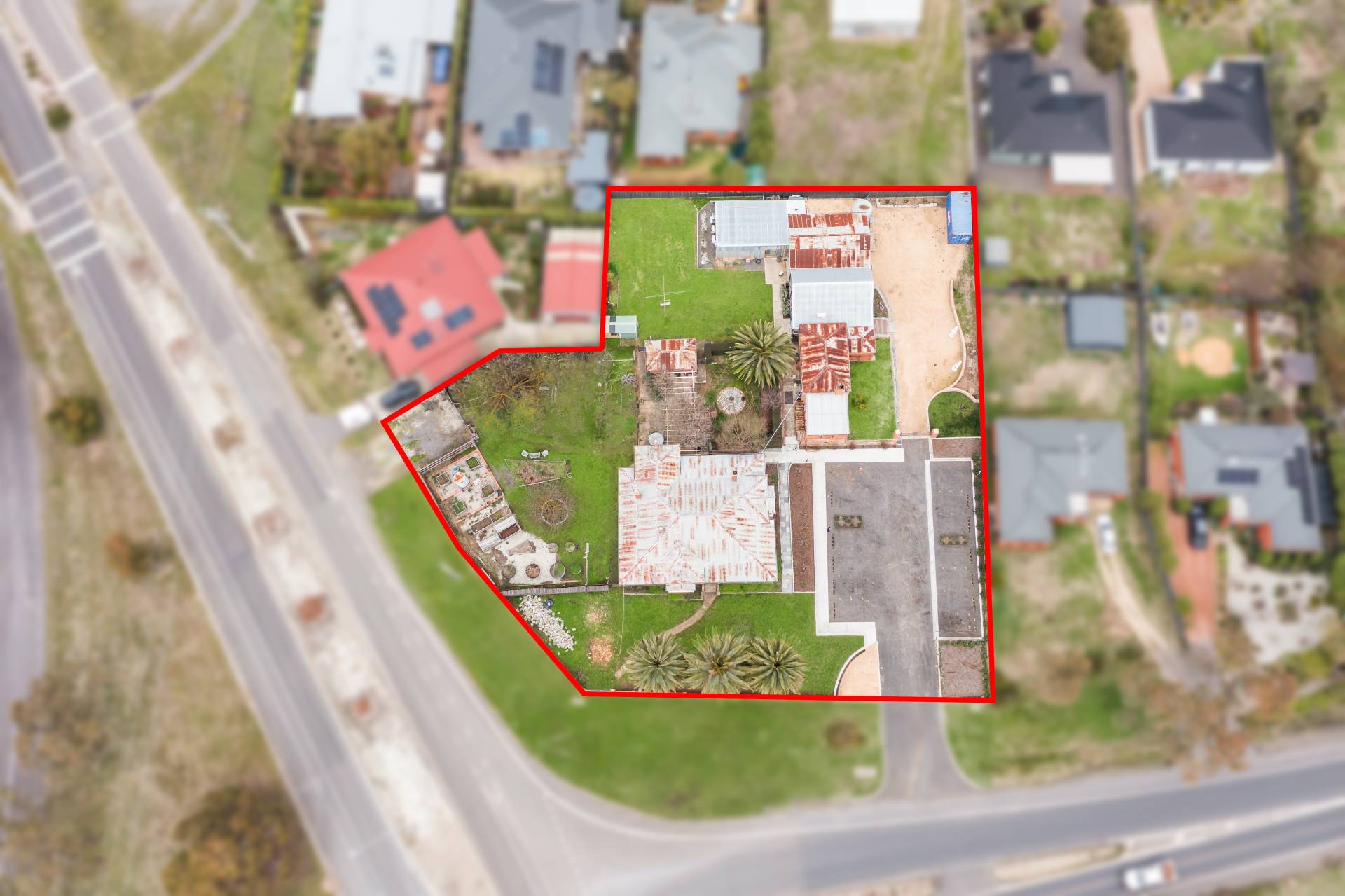 Set on a prominent corner block just minutes from the Calder Freeway, the property also includes a charm-filled 4-bedroom residence, lush gardens, and multiple outbuildings—all with outstanding street presence and access.