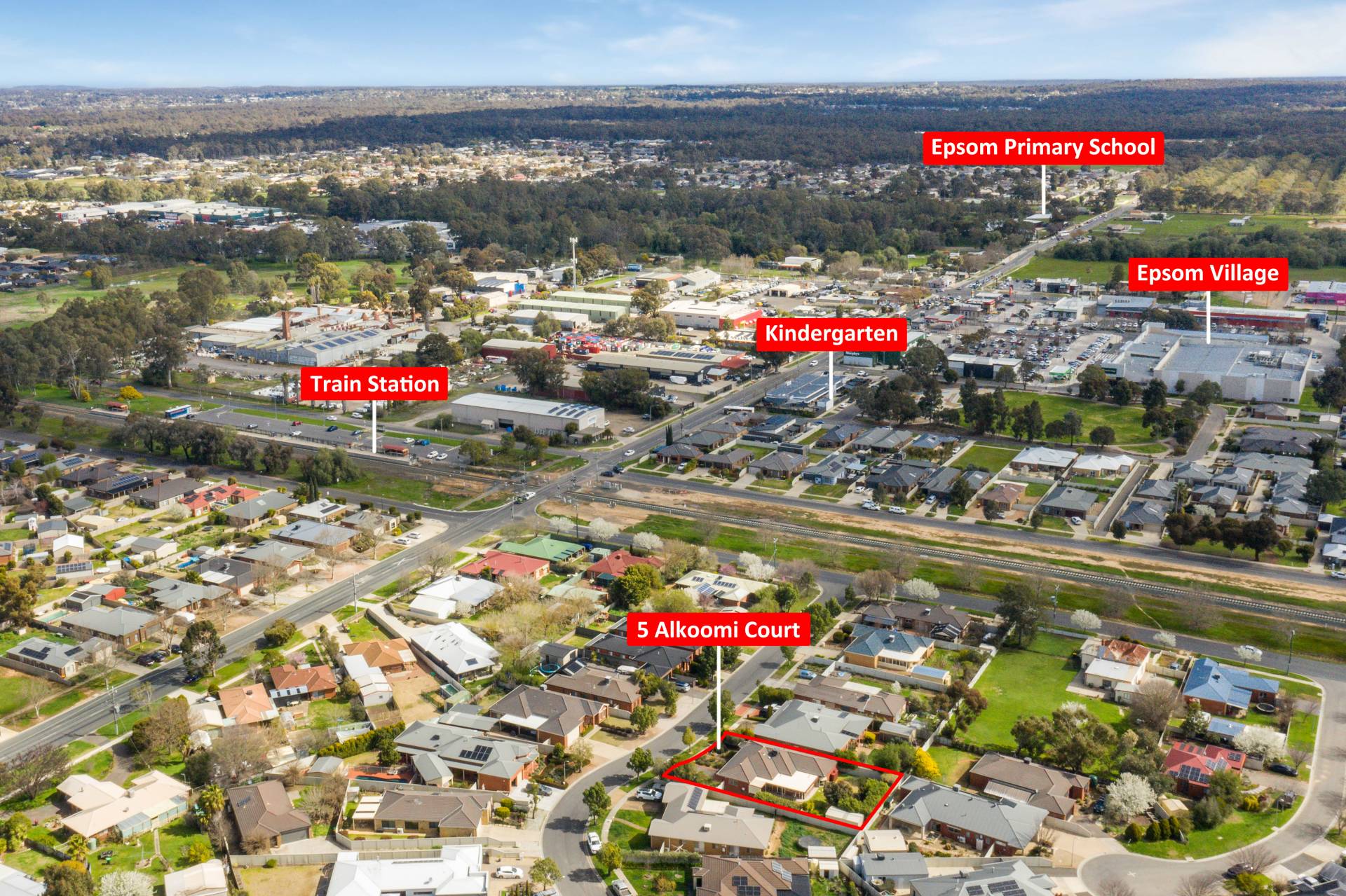 Welcome to 5 Alkoomi Court a well-proportioned, Federation-style residence offering comfort, space and versatility on a generous 760 sqm block. Whether you're a growing family, a seasoned investor or simply seeking a peaceful place to call home, this property ticks the right boxes.Nestled in a quiet cul-de-sac on Epsom’s southern fringe, the location offers both tranquillity and convenience. Just moments away are local amenities including Epsom Train Station, Epsom Village, Chemist Warehouse, Bunnings, Snap Fitness and the Epsom Golf Course. The property also sits near Bendigo’s horse racing precinct, adding a unique local flavour to the area.Inside, the home features three well-sized bedrooms plus a study, two bathrooms and a spacious double garage with vehicle access to the rear. The front living area is framed by elegant bay windows, while a large rumpus room at the rear provides flexible space for entertaining, relaxing or working from home. The home is also equipped with ducted heating and cooling throughout, ensuring year-round comfort. This is a home that offers both character and practicality, ready to welcome its next chapter.
