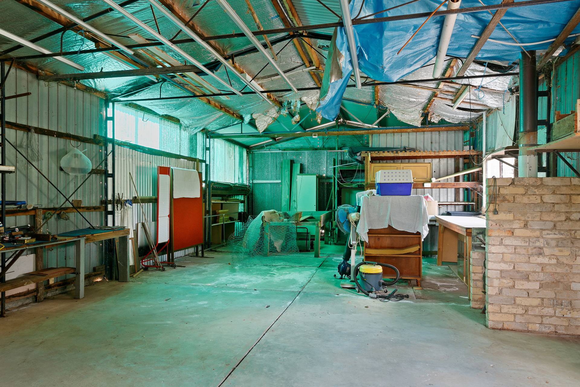 Down the ramp at the back is a fully covered in area attached to the huge  shed which features a wood burning heater for those chilly evenings and also a toilet.