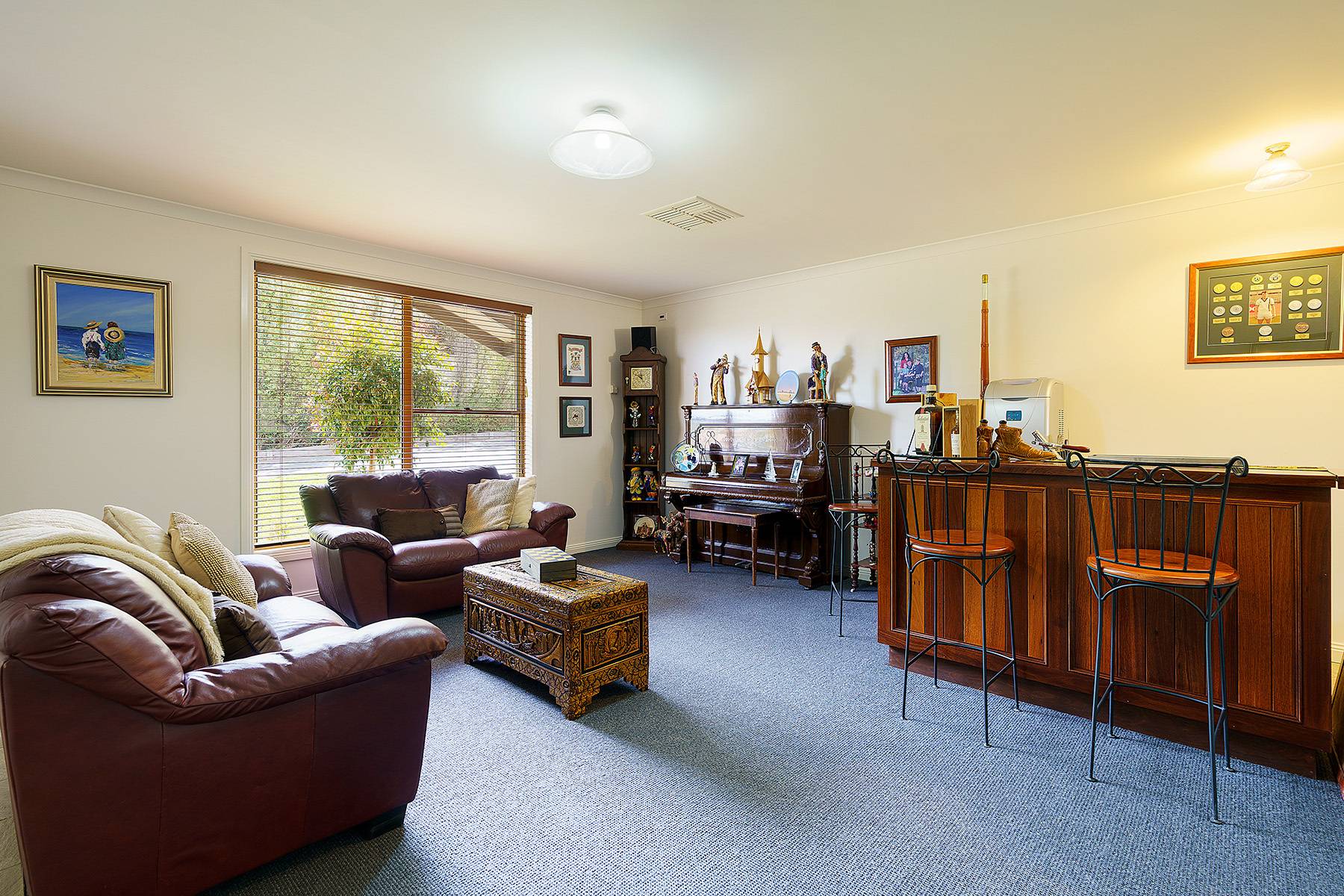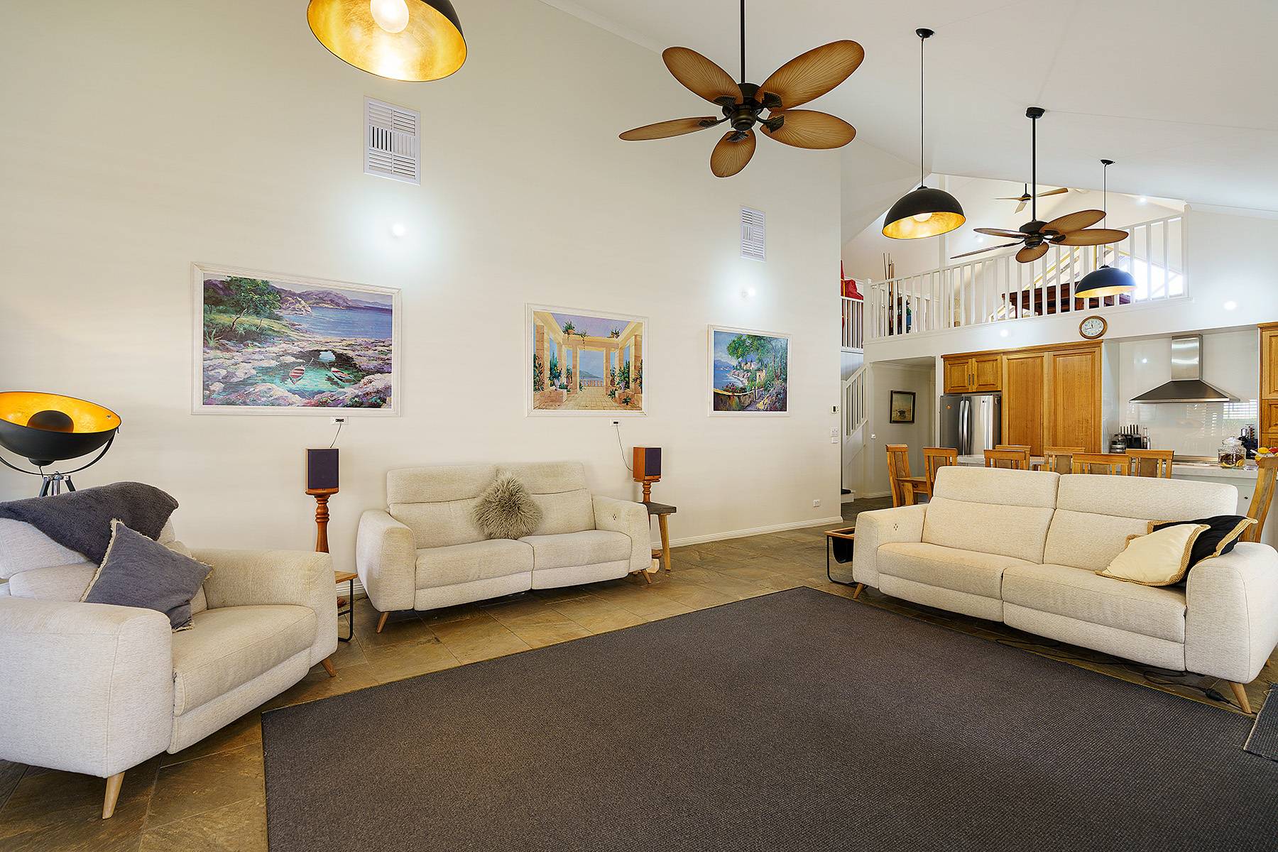 The high portico covered entrance leads you into the home with the first living area to your left which is fitted with a solid Jarra bar for grand entertaining.