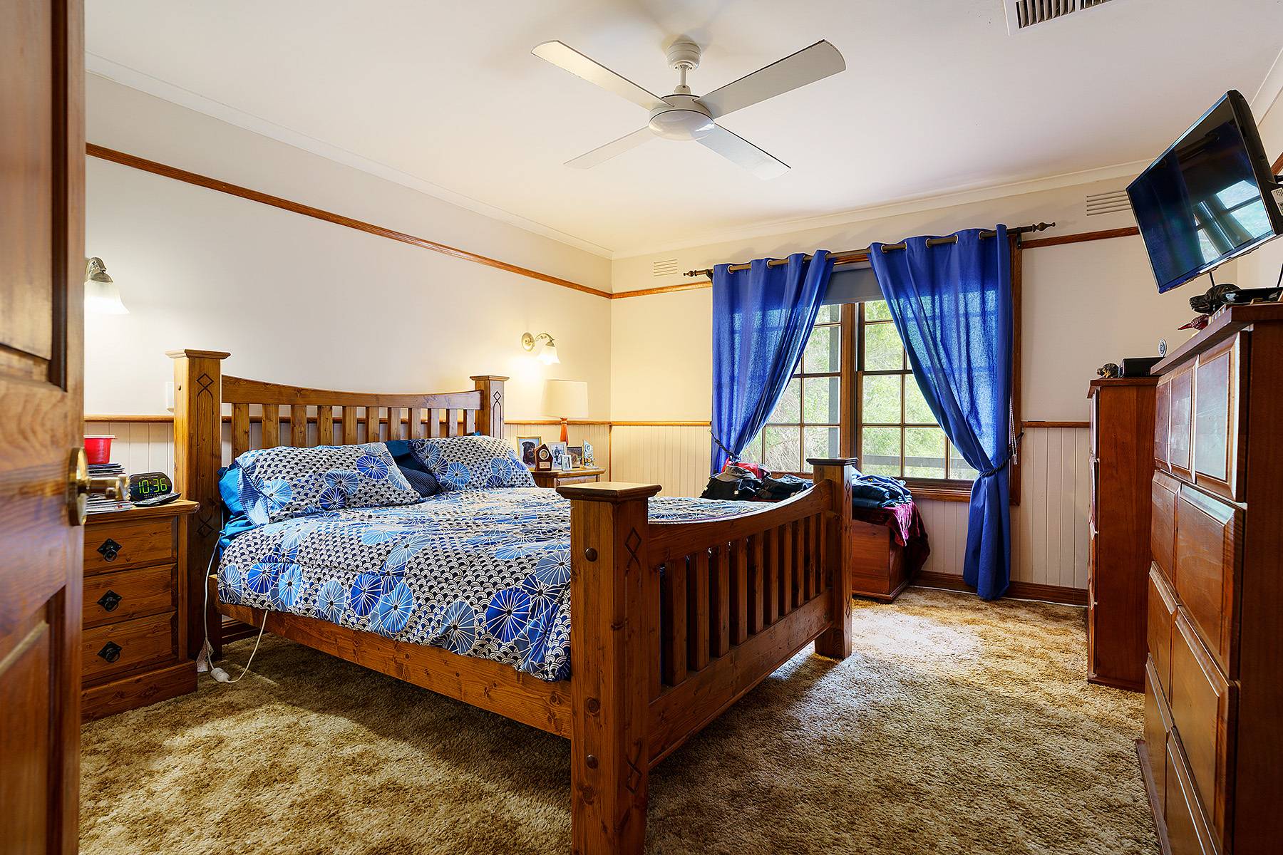 The main switchboard was replaced, and a new switchboard was put in the garage. In 2017 new fans with lights in the bedrooms were installed, and all internal wiring checked for safety. A few weeks ago, the front and back entrance doors were replaced , plus security doors installed.