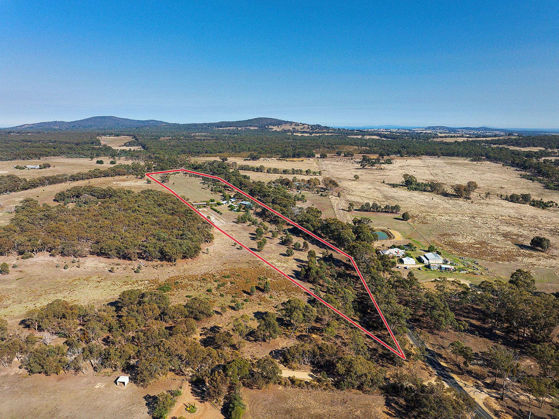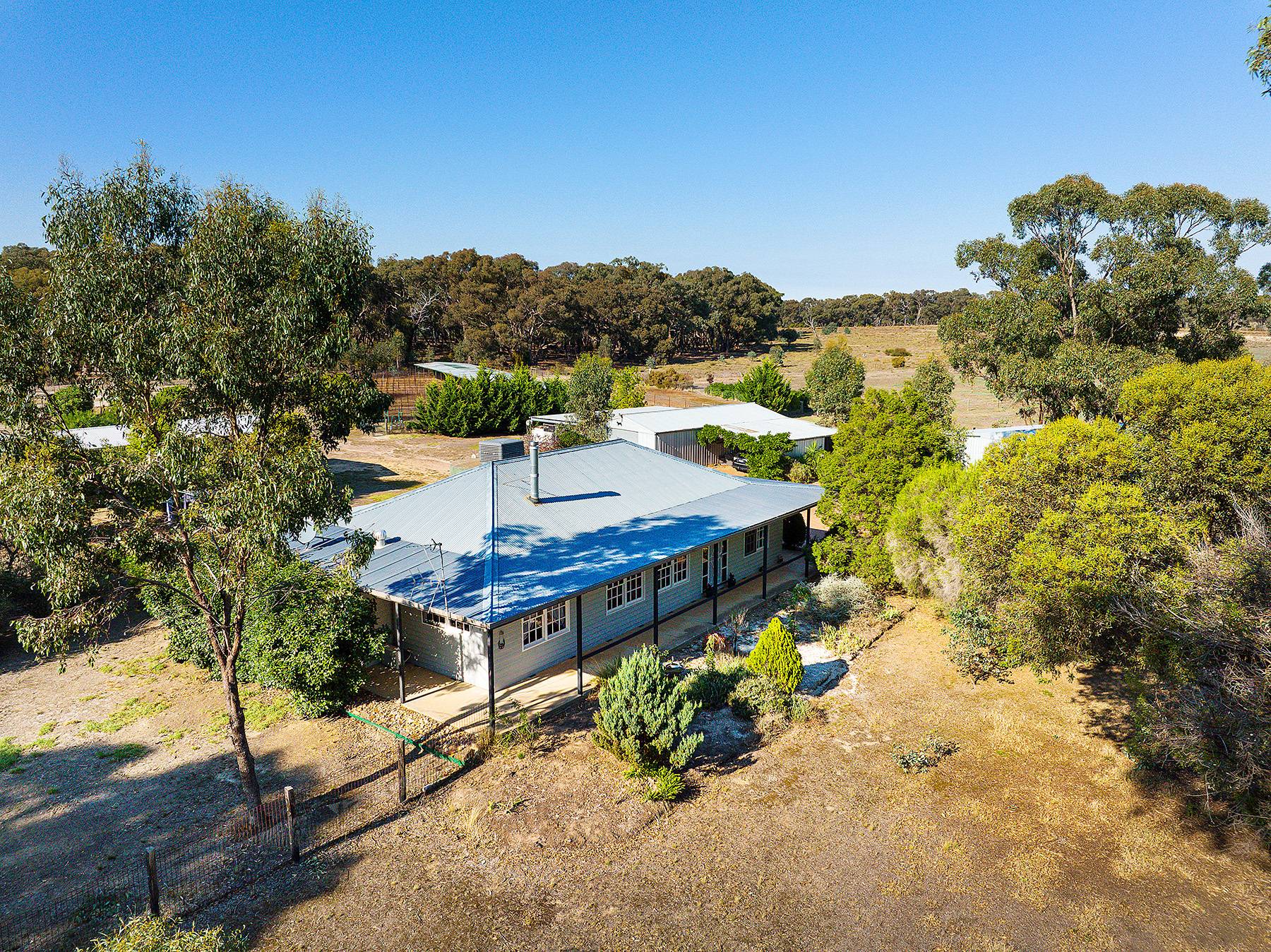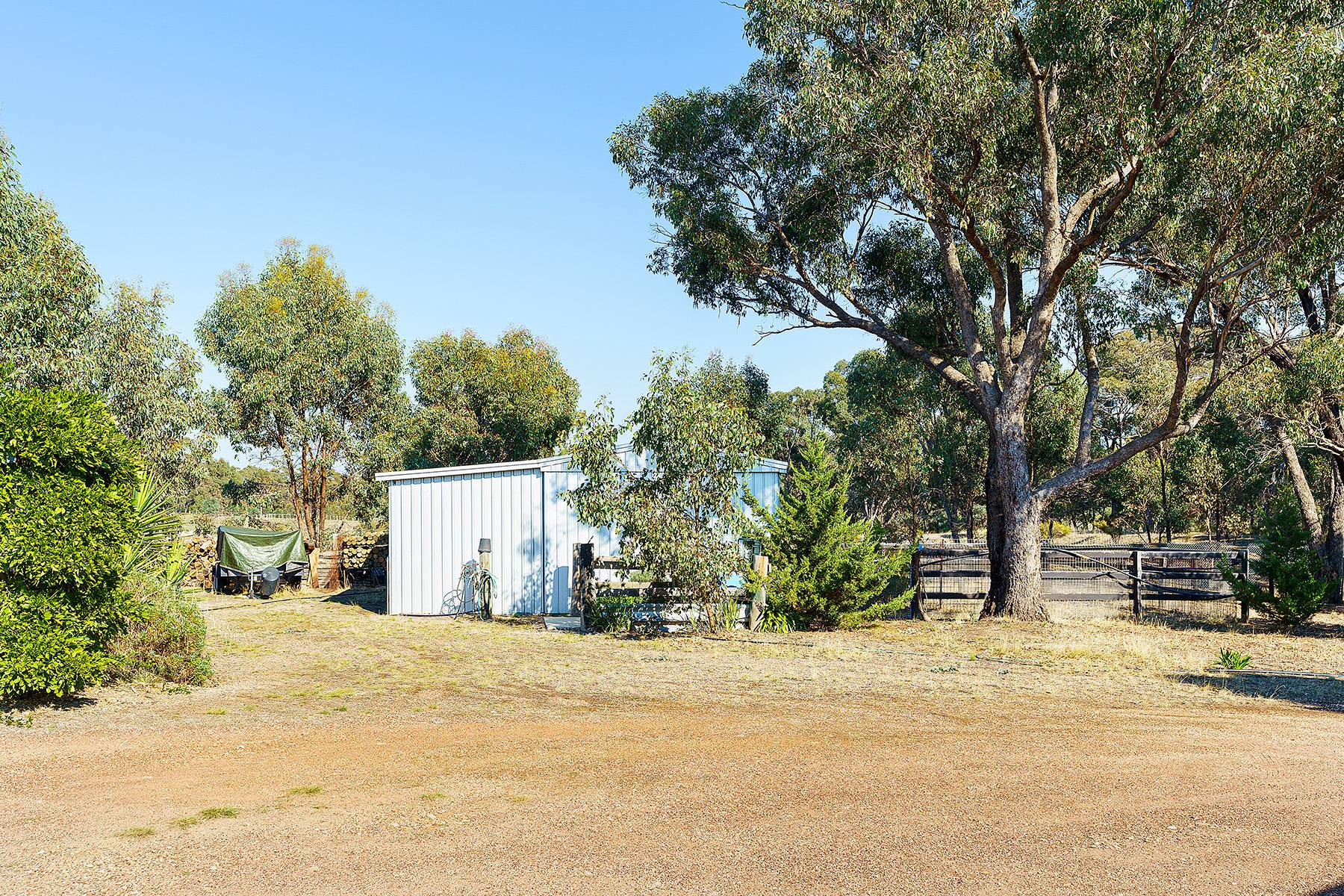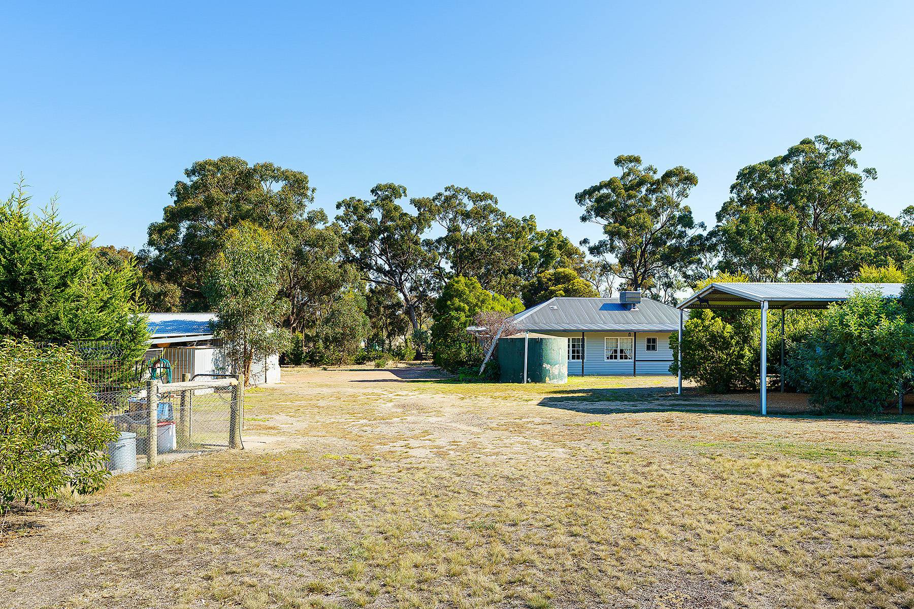 Maldon close by  about  4ks...24 cleared acres and a very comfortable 4 bedroom home with large family lounge and seperate kitchen dining room with verandah all round with concrete walkways under...huge 6 car carport , 3M HIGH,(or 4 caravans, or a mixture of boats, horse floats, utes ). Near new steel stables with handling yards, as well as 2 car garages , one incorporating a powered workshop. There is a new (2013) 22500 litre Polymaster tank, with pump for constant water. There are numerous shade trees around the house.