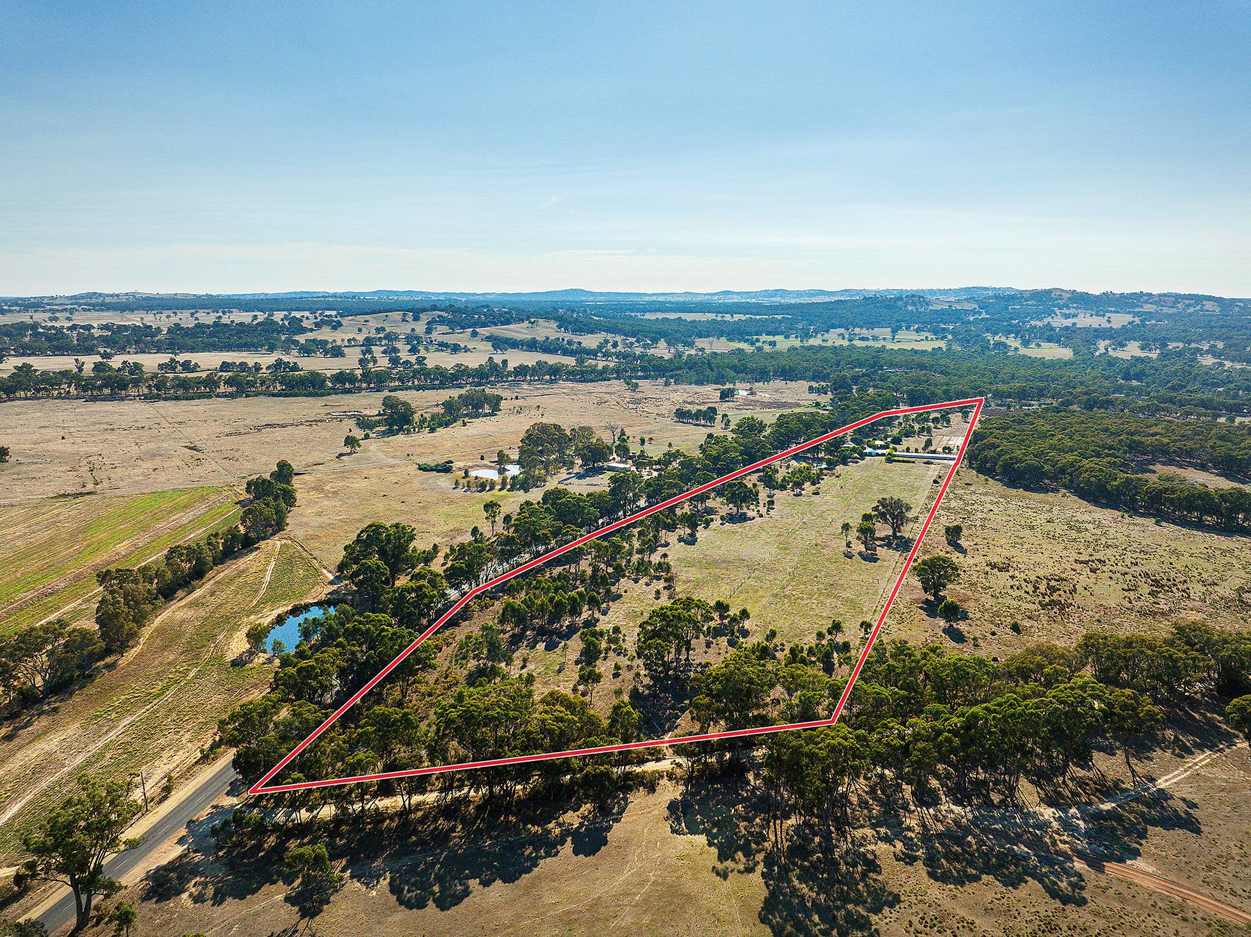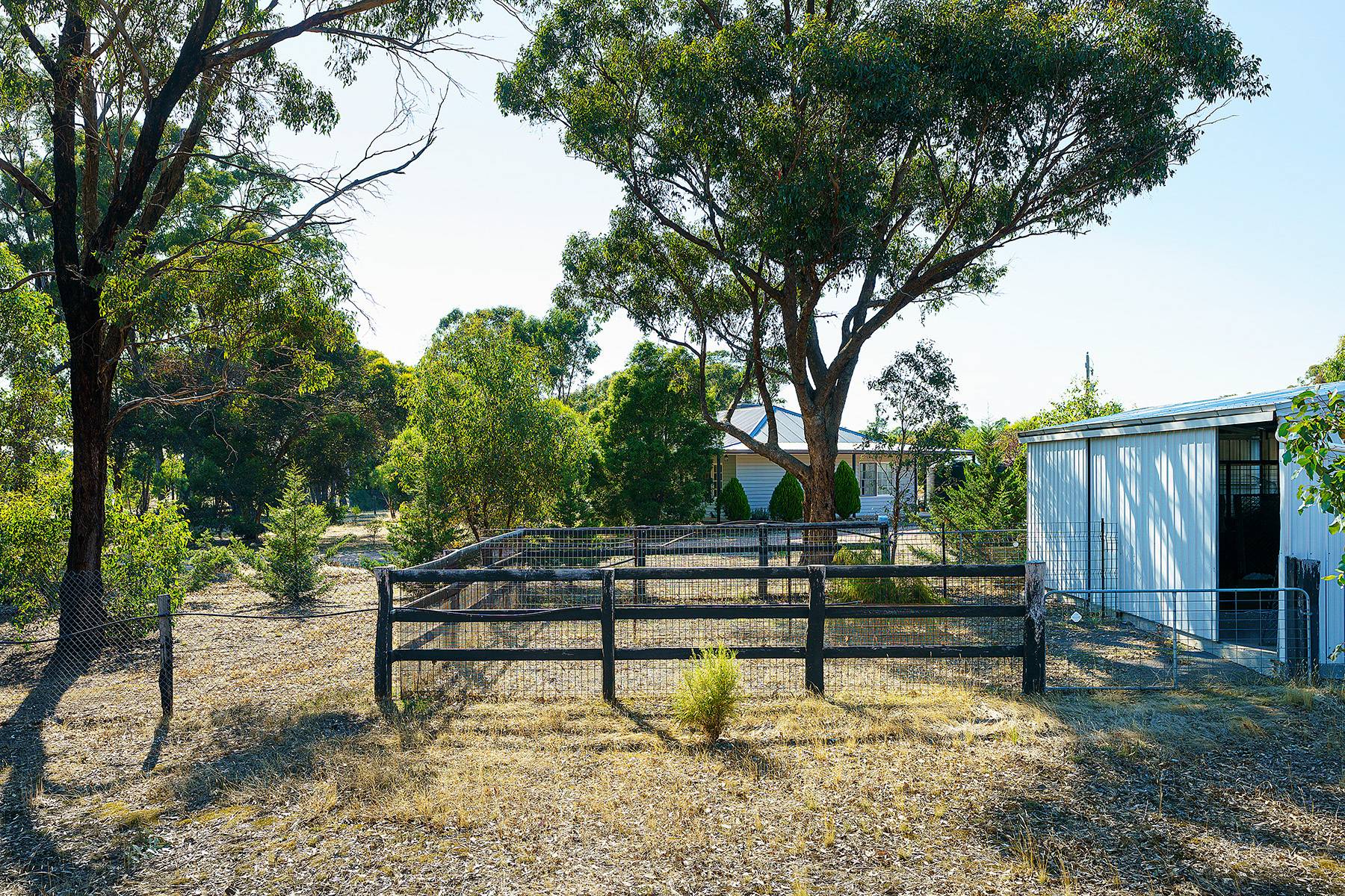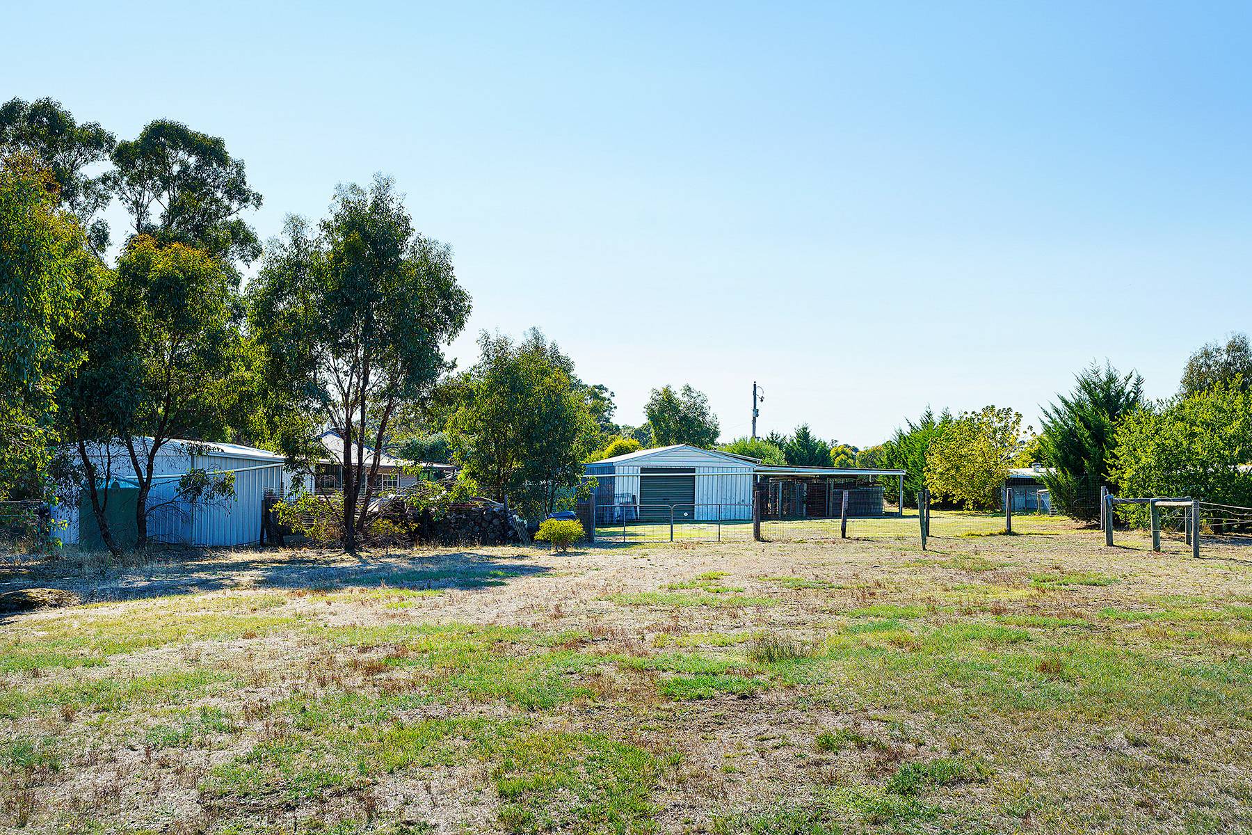 Maldon close by  about  4ks...24 cleared acres and a very comfortable 4 bedroom home with large family lounge and seperate kitchen dining room with verandah all round with concrete walkways under...huge 6 car carport , 3M HIGH,(or 4 caravans, or a mixture of boats, horse floats, utes ). Near new steel stables with handling yards, as well as 2 car garages , one incorporating a powered workshop. There is a new (2013) 22500 litre Polymaster tank, with pump for constant water. There are numerous shade trees around the house.