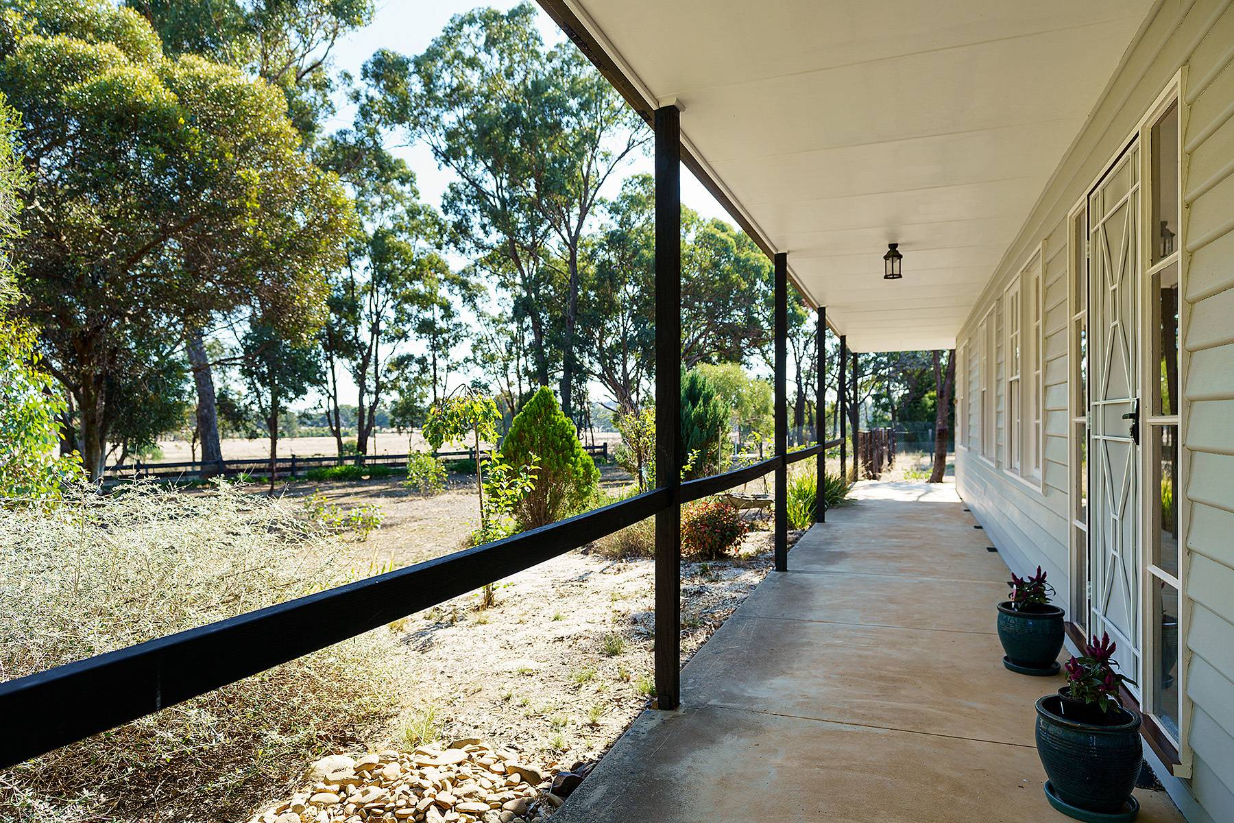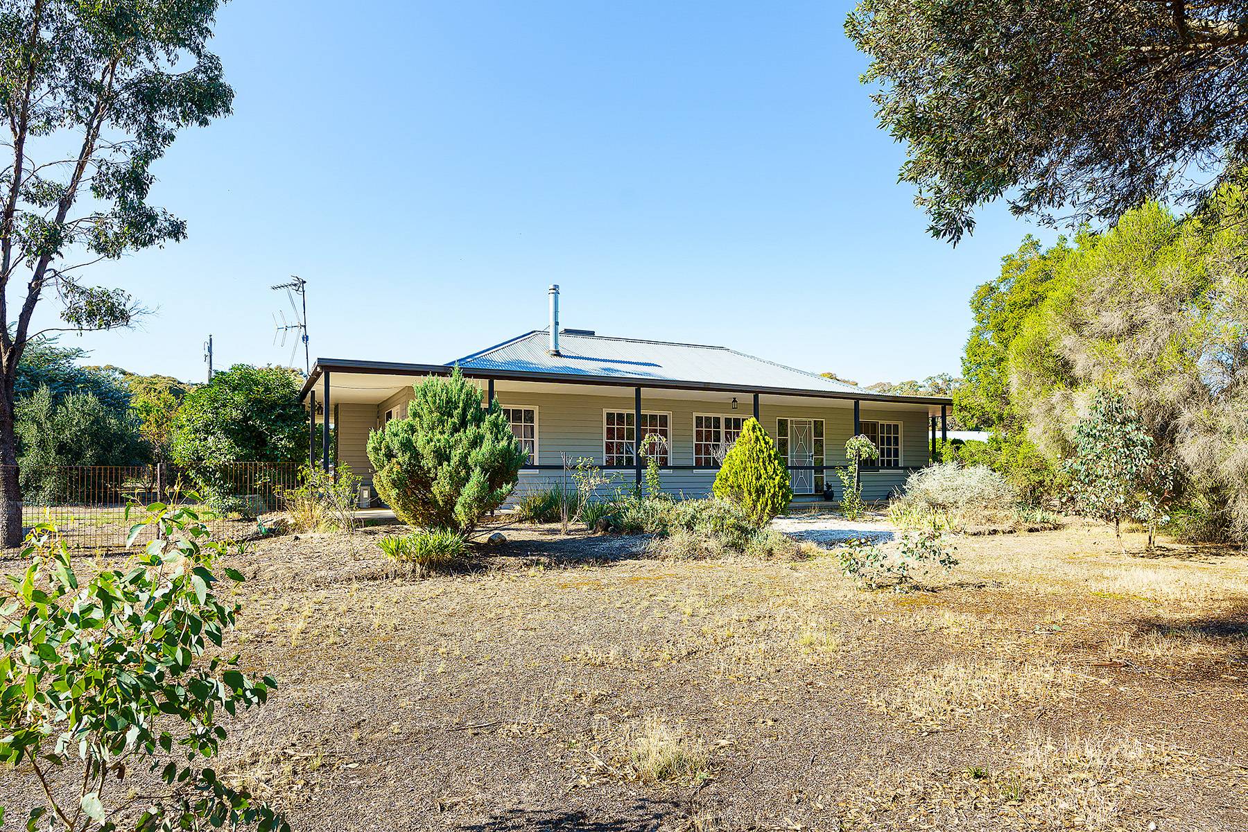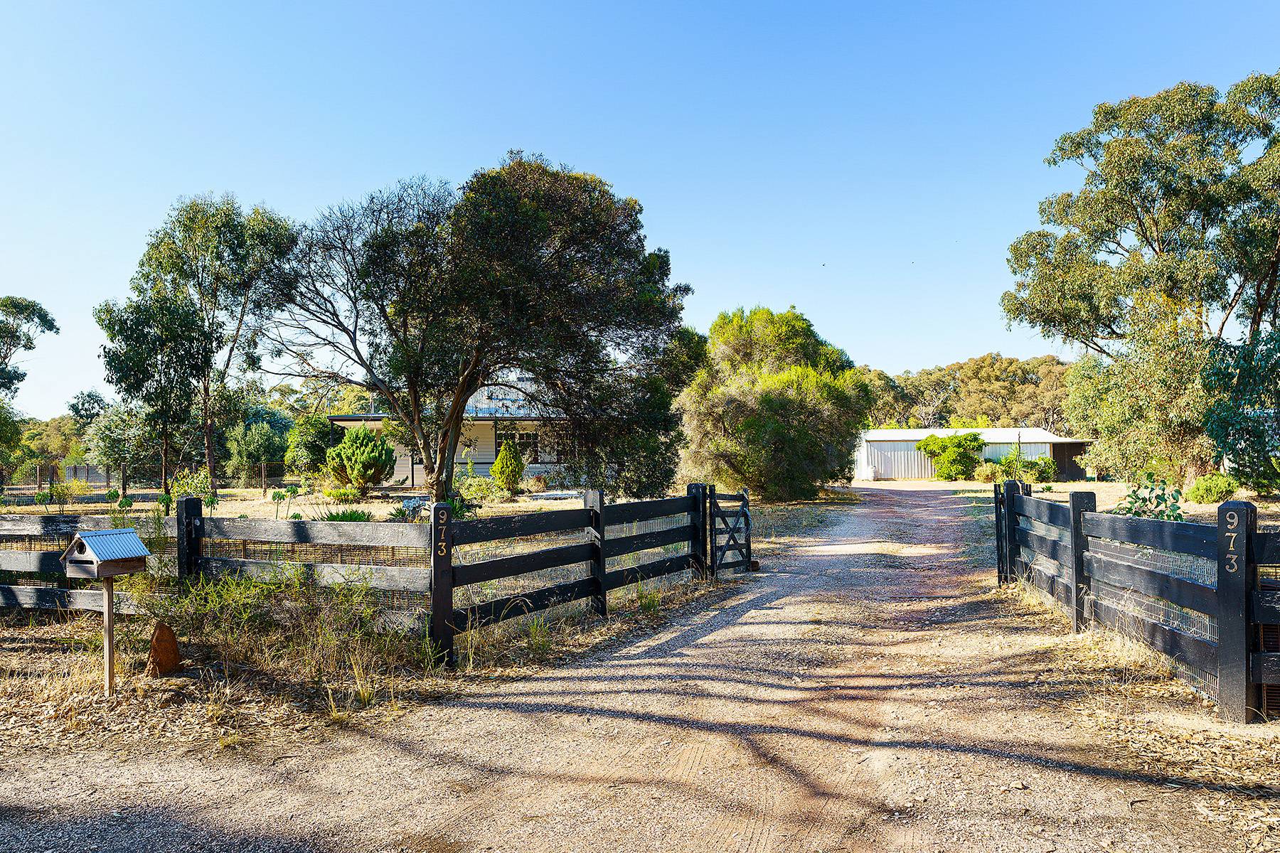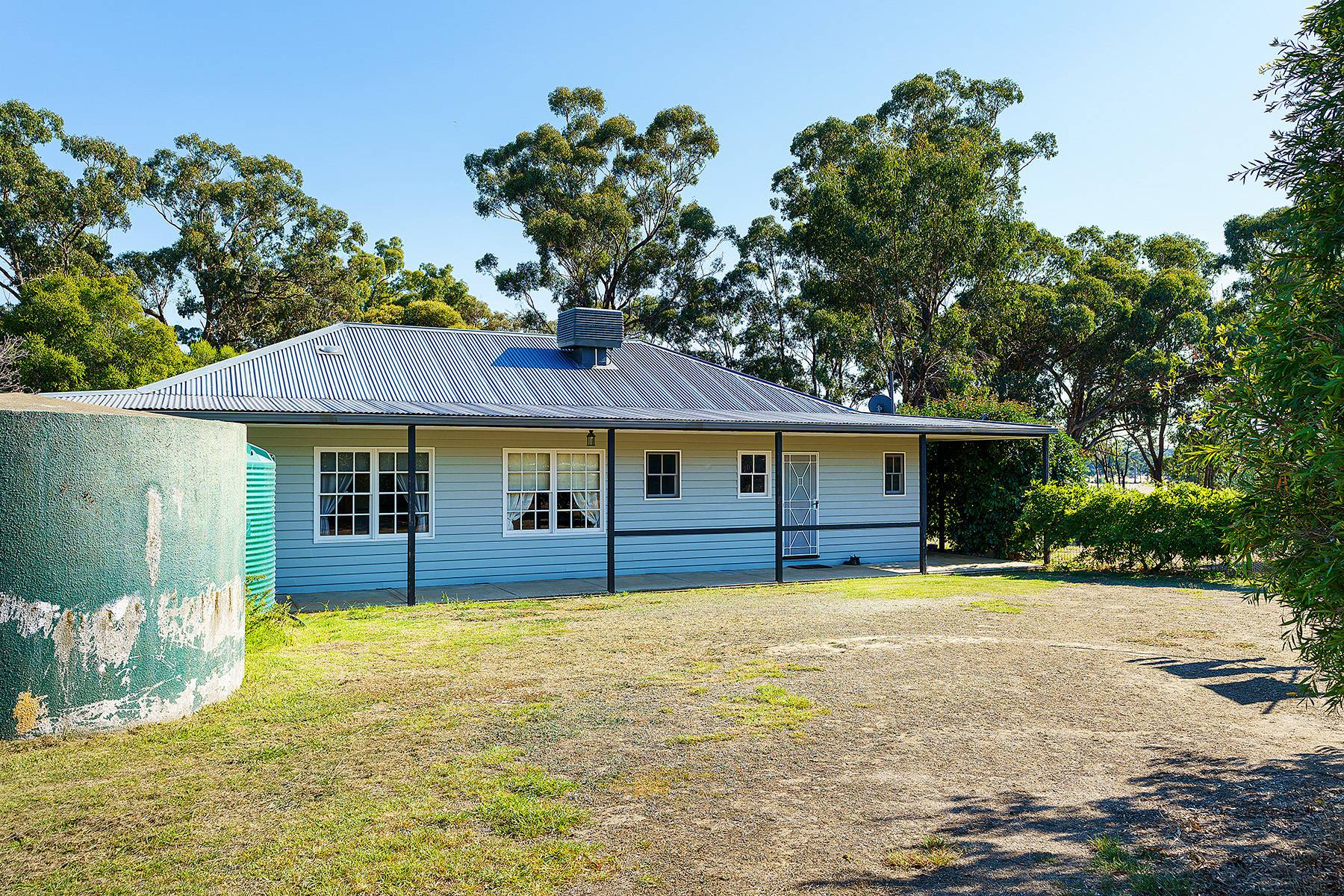 Maldon close by  about  4ks...24 cleared acres and a very comfortable 4 bedroom home with large family lounge and seperate kitchen dining room with verandah all round with concrete walkways under...huge 6 car carport , 3M HIGH,(or 4 caravans, or a mixture of boats, horse floats, utes ). Near new steel stables with handling yards, as well as 2 car garages , one incorporating a powered workshop. There is a new (2013) 22500 litre Polymaster tank, with pump for constant water. There are numerous shade trees around the house.