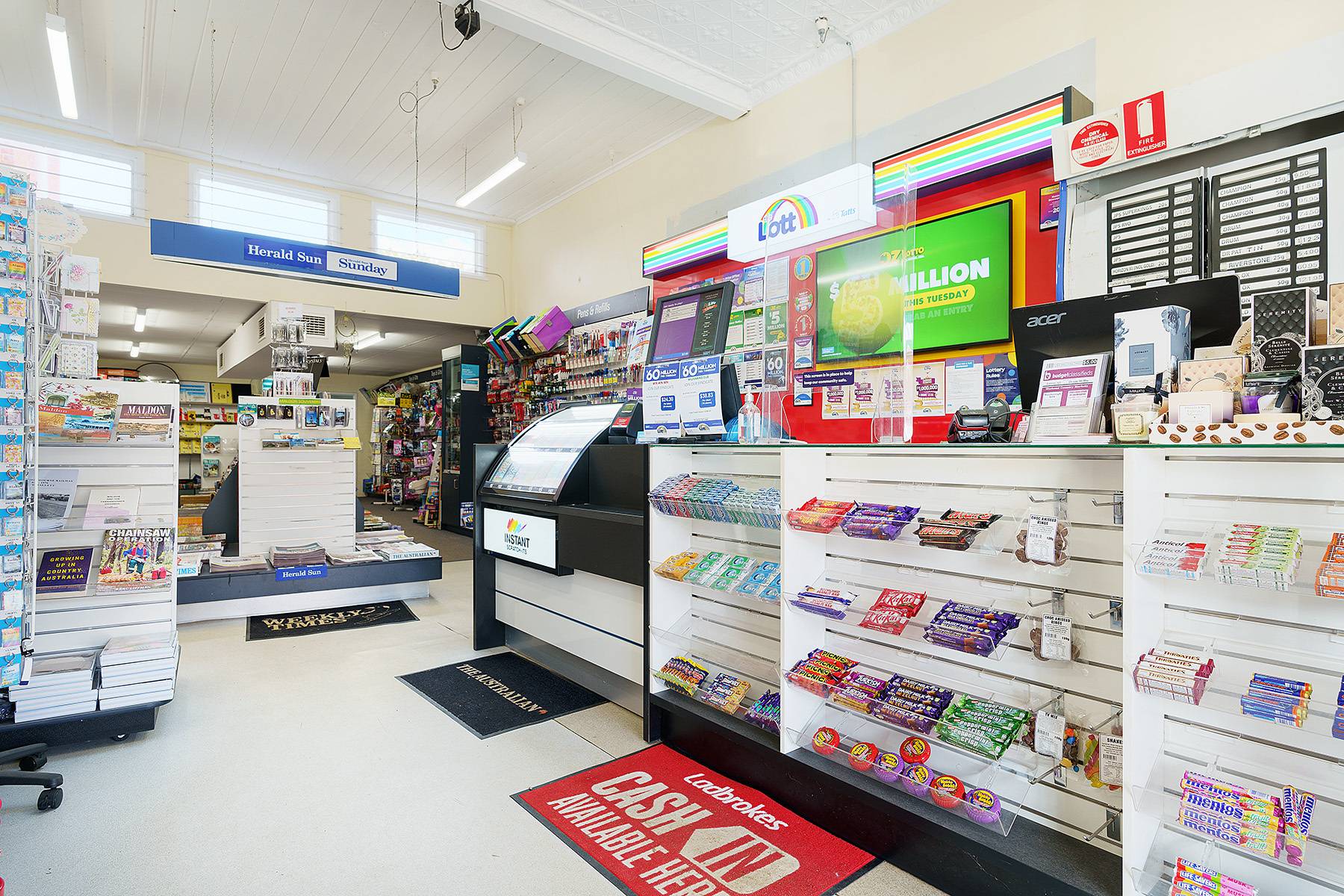 The bonus here, is the Newsagency is the only TattsLotto outlet for Maldon and surrounds. There have been5 Division 1 Saturday winners. In the last six months, two have been $2.5 million!