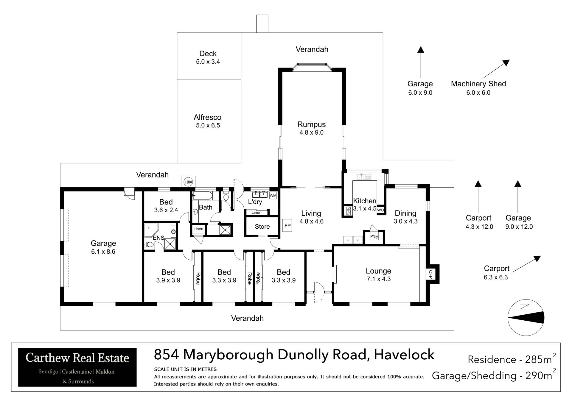 Just when you thought this property couldn't  offer anything more it features a huge 9x12 metre, powered and concrete floored shed with an additional roofed area of 4x12 metres. This is perfect for a motoring enthusiast to securely house any prized vehicles or even for a small at home industrial business. Every grand property must come with a grand shed. And to top it all off it even has an additional 6x9 metre shed located behind as well as a 6x6 metre machinery shed and a carport of two car spaces.